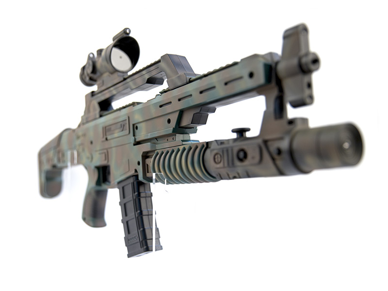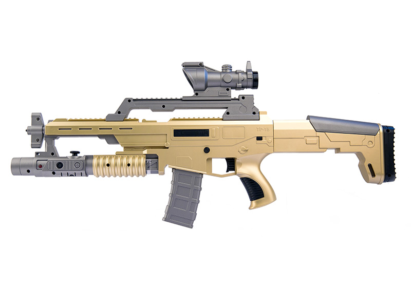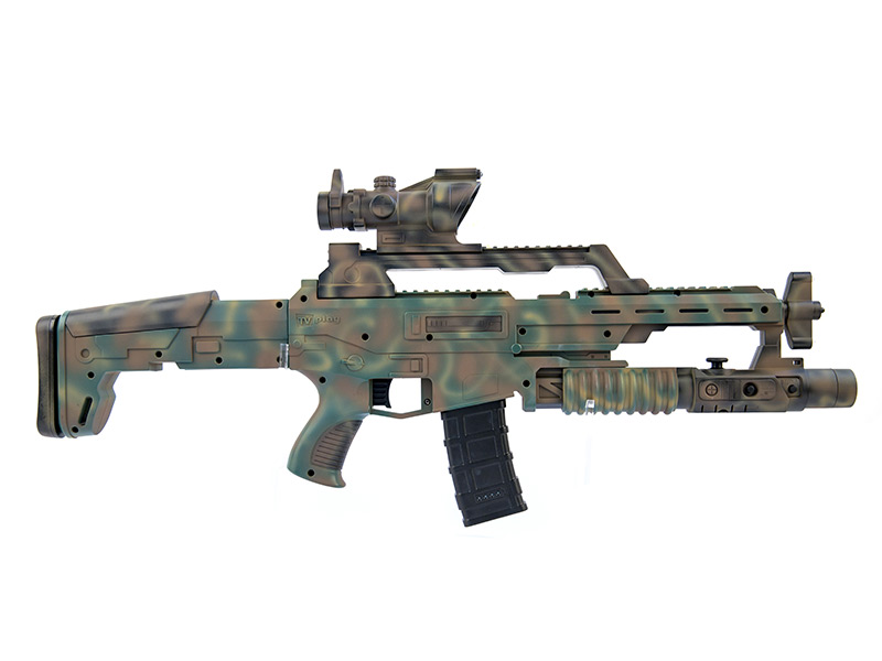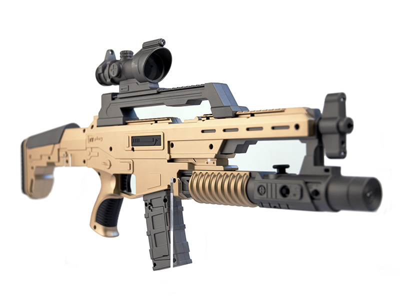 酷開極客槍王,是一把1:1高仿真的體感游戲槍,該游戲槍外觀酷炫霸氣,主要由槍身、槍托、彈匣、以及一個插在電視上的多功能感應攝像頭組成,為了模擬真實的射擊體驗,在槍托后部設有震動裝置,在設計時可以產生強勁的后坐力。 玩家可以真正端起槍來對著電視進行瞄準和射擊,能夠真實的感覺到槍的重量和射擊后坐力,并且根據不同的子彈有不同強度的后座力表現,真實還原逼真戰斗場景,帶給你前所未有的擬真體感游戲體驗!