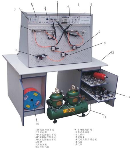 氣動-PLC控制實驗臺是根據《液壓與氣壓傳動》、《氣動控制技術》等通用教材內容要求,參考廣大師生的建議,精心設計而成。該系統除了可以進行常規的氣動基本控制回路實驗外,還可進行模擬氣動控制技術應用實驗、氣動技術課程設計,以及可編程序控制器(PLC)學習及其基本應用實驗等,是機電完美結合的典型實驗設備。
