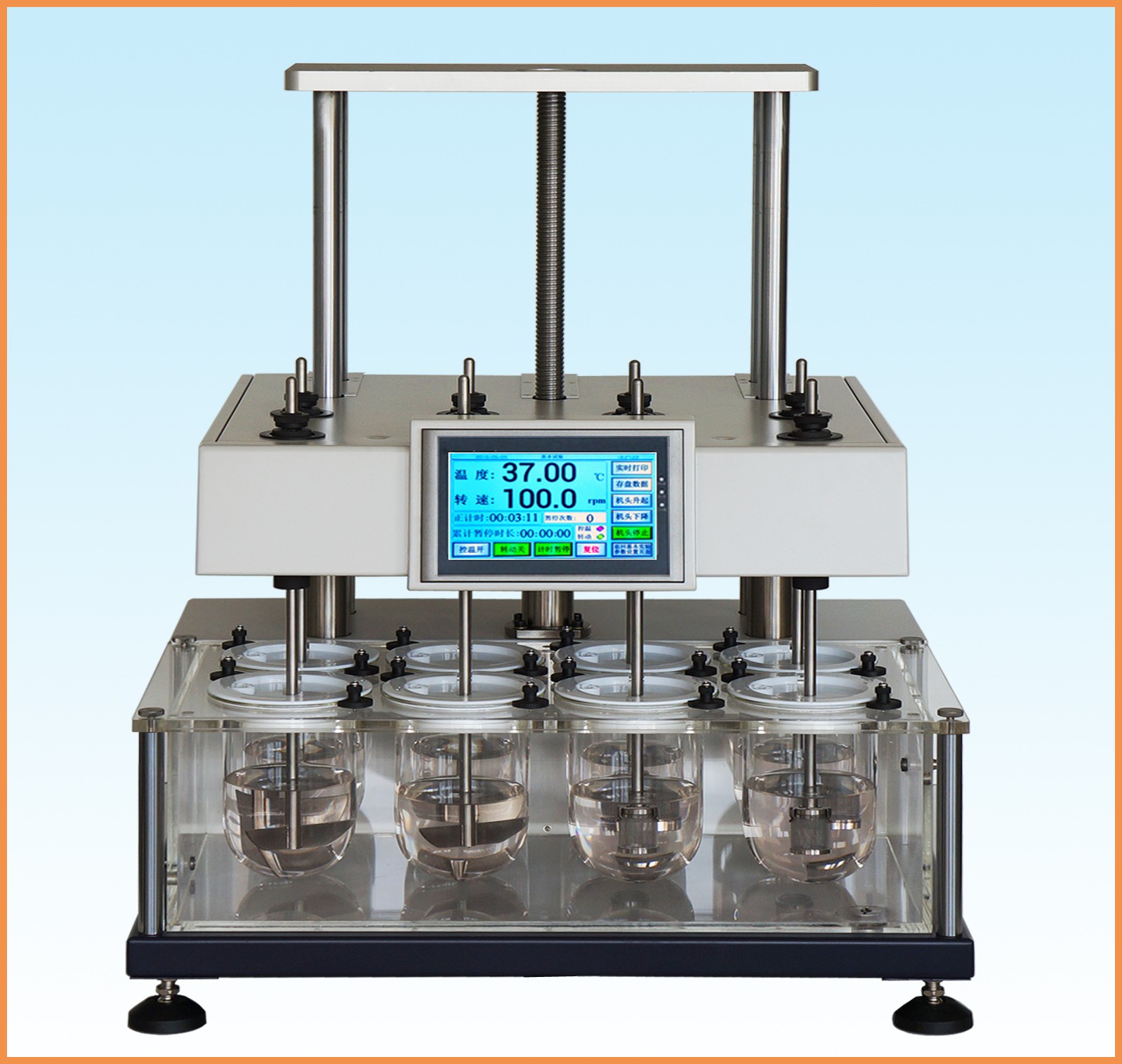 RC8DF藥物溶出試驗儀, 是公司研發生產的一款高精度藥物溶出試驗儀。符合《中國藥典》2015 年版,符合食品藥品監管總局《藥物溶出儀機械驗證指導原則》。該儀器采用八杯八槳四柱支撐結構形式,可同時進行一個批次的藥物溶出試驗,一個空白試驗,一個標準品試驗。全新設計的電氣控制和操作系統,功能強大、操控方便、性能穩