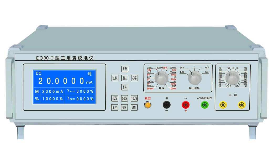 DO303b型多功能校準(zhǔn)儀是具有六位LCD液晶屏數(shù)字顯示輸出值、被檢表誤差、輸出量百分比、被檢表滿(mǎn)度值、步進(jìn)值、頻率等參數(shù)的交直流電壓、電流校準(zhǔn)源。另設(shè)22檔標(biāo)準(zhǔn)電阻器組,方便校準(zhǔn)萬(wàn)用表電阻檔。