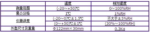 該儀表為圓盒結(jié)構(gòu)。體積小,重量輕,堅固耐用,便于攜帶和安裝。適用于氣象觀測和倉庫、醫(yī)院、科研、農(nóng)業(yè)、工礦企業(yè)、實驗室、空調(diào)機房等各種行業(yè)需要測定環(huán)境溫度和相對濕度的場所