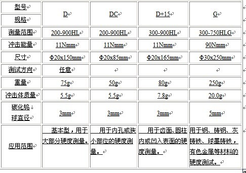 本硬度計可配置5種不同的沖擊裝置,其中D型為基本型,