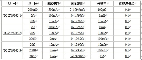 測試電流小,特別適宜檢測對電流有一定限制要求的各類直流電阻,如鉑熱電阻、銅熱電阻、熱敏