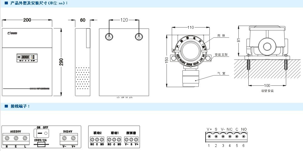 報警方式: 一段繼電器無源觸點輸出(A1段),觸點容量1A 24VDC(可選)