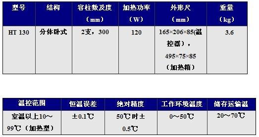 HT130為我公司Z早期開發生產的分體式柱箱,由于它使用靈活,擺放靈活,擺放機動,容柱長,并可應用戶要求定做加長的加熱箱,故可應用于各種品牌的液相系統場合,屬于通用性。