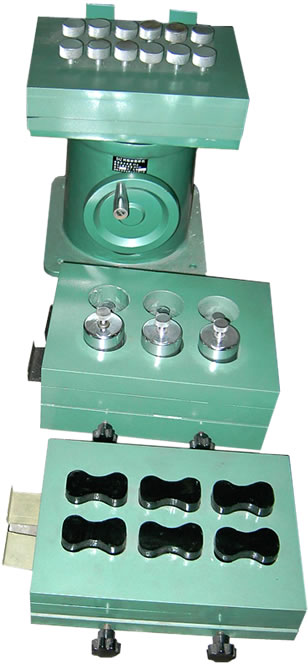 樹脂砂制樣機用于制作測定樹脂砂透氣性、抗壓、抗剪、抗拉強度及熱穩定性等各項工藝物理性能時所用的標準試樣。樹脂砂制樣機由機座、底板、試樣合、予添匡、拉刀、導向板、重塊、手輪、凸輪等部分組成。可同時制作一定緊實度的標準試樣多個。