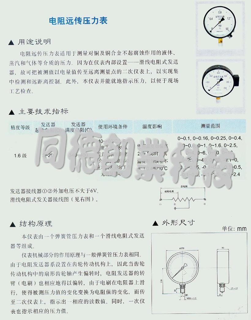 電阻遠(yuǎn)傳壓力表 型號::KY-YTZ-150