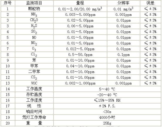 注:氣體監(jiān)測(cè)項(xiàng)目任選,監(jiān)測(cè)項(xiàng)目不同,價(jià)格不同。