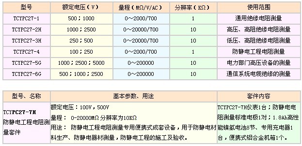 TCYPC27-5G、TCYPC27-6G數字式自動量程絕緣電阻表是目前國內的袖珍式高壓兆歐表,內置高性能可充電鎳氫電池和附有鋁合金外箱及充電設備給用戶帶來了很大的方便。本產品適用于發電廠、輸變電行業、通信行業以及高壓電機、變壓器、電纜開關、電容器等各種高壓電器、設備的絕緣性能測試、絕緣電阻吸收比測試及化系數測定。