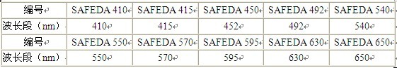 本機(jī)濾光器按常規(guī)標(biāo)準(zhǔn)已配置:650nm、492nm、452nm和405nm波長的濾光器。如用戶有特殊需要,可向廠家訂制不同波長的濾光器。供選購的濾光器如下: